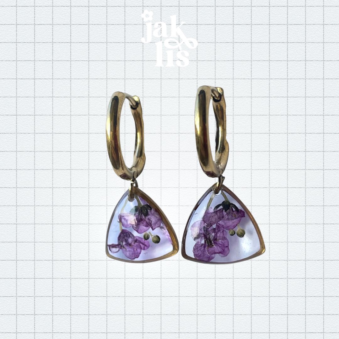 wiszący element w kształcie trójkątu zawiera kwiaty smagliczki w kolorze fioletu