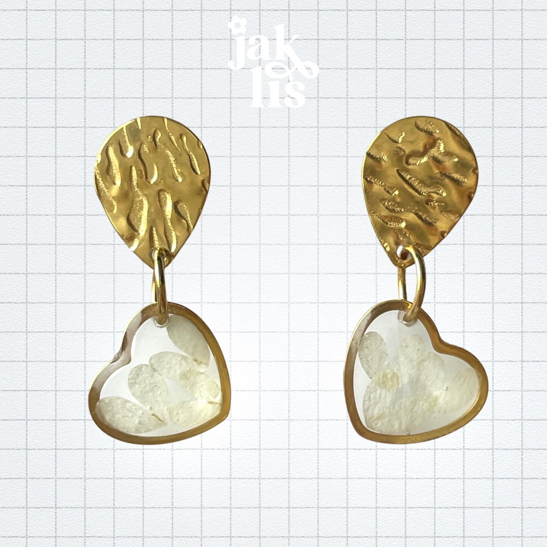wiszący element w kształcie serca zawiera ozdobne płatki dzikiej marchwii